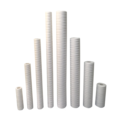 Wound filter cartridges are made up of continuous winding process that generates a superior high performance filter with hundreds of diamond and spherical shaped tunnels from out diameter to inner perforation core. They offer an economic, compact, easily installed and maintained filtration system for removal of solid particles from liquid. Wound cartridges are manufactured from a types of carefully selected raw materials. Micron rating wise specially designed winding patterns are use with help of computerized programmed controllers. Particles are progressively trapped as fluid travels from outer core to inner core(center) of filter cartridges and the particulates are trapped securely in the filter cartridges and offer depth filtration.
